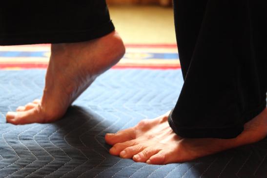 - ¿Tus rodillas están bloqueadas o suavemente dobladas? ¿Cómo puedes cambiar la organización de tus rodillas para contribuir a la comodidad del pie?