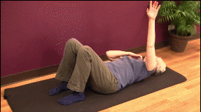 • Acuéstate sobre una colchoneta con los brazos apoyados en el suelo. También puedes realizarlo sobre la cama aunque es menos efectivo.